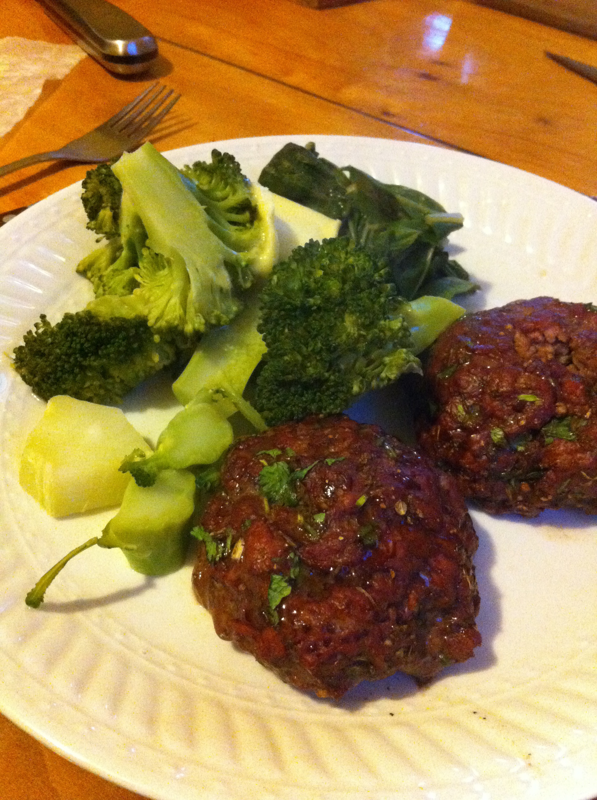 Yo soy de esas personas que le gusta la comida sencilla pero rica, así que no me importa mucho con qué acompaño las cosas. Pero estas hamburguesas son PARA MORIRSE si las sirves con un guacamole medio marroquí en cima. Yo lo hago con palta/aguacate (obvio), cilantro, comino, semilla de cilantro molida, sal y pimienta. Es para chuparse los dedos. O con puré de papa camote, con aceite de coco o mantequilla o ghee, canela molida, clavo de olor molido, jengibre fresco rallado, sal de mar y pimienta negra. Uy, me dio hambre. Pero puedes acompañarlas con la verdura que se te dé la gana. Sé creativo.